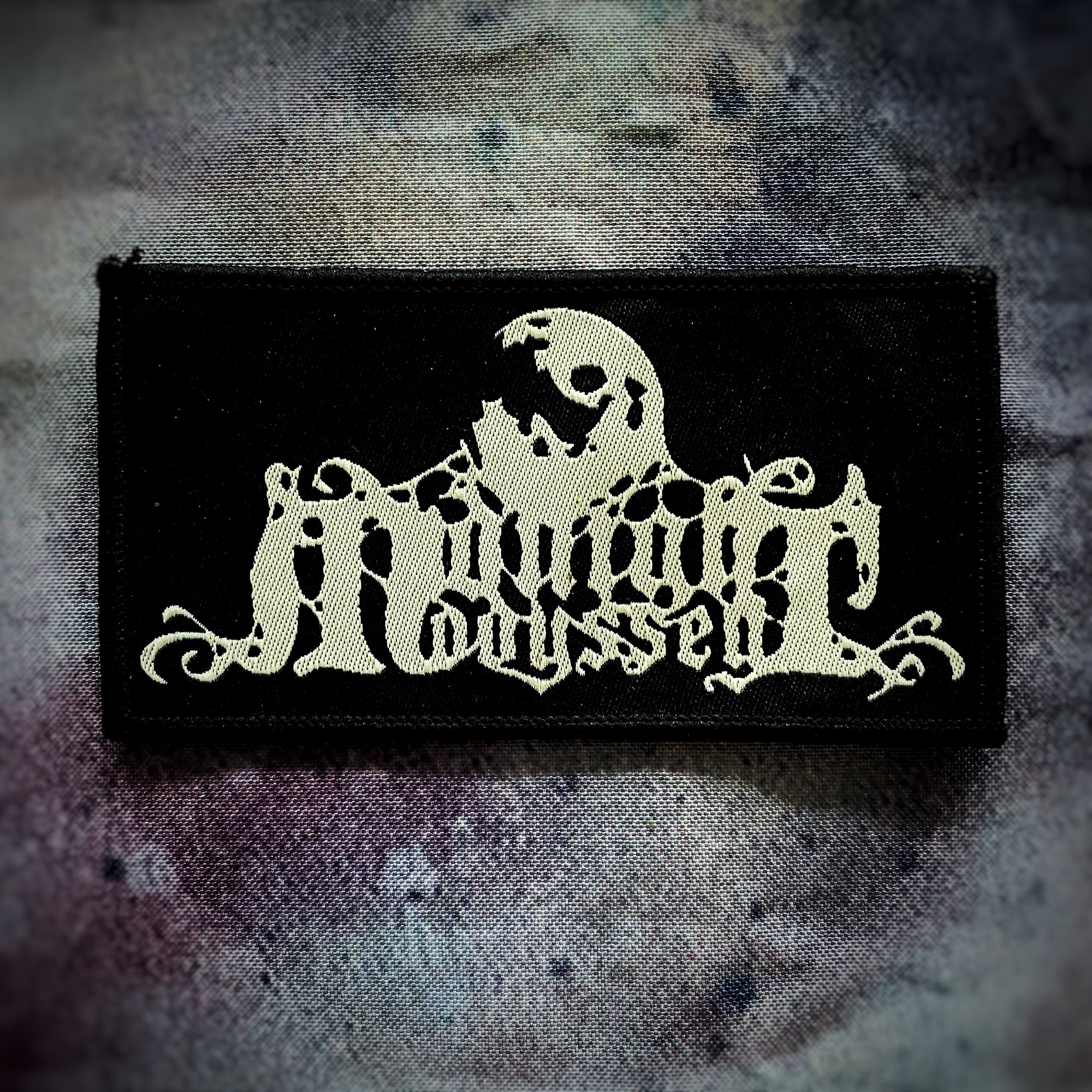 Official Midnight Odyssey "Logo" Patch. Woven patch with black paper backing.