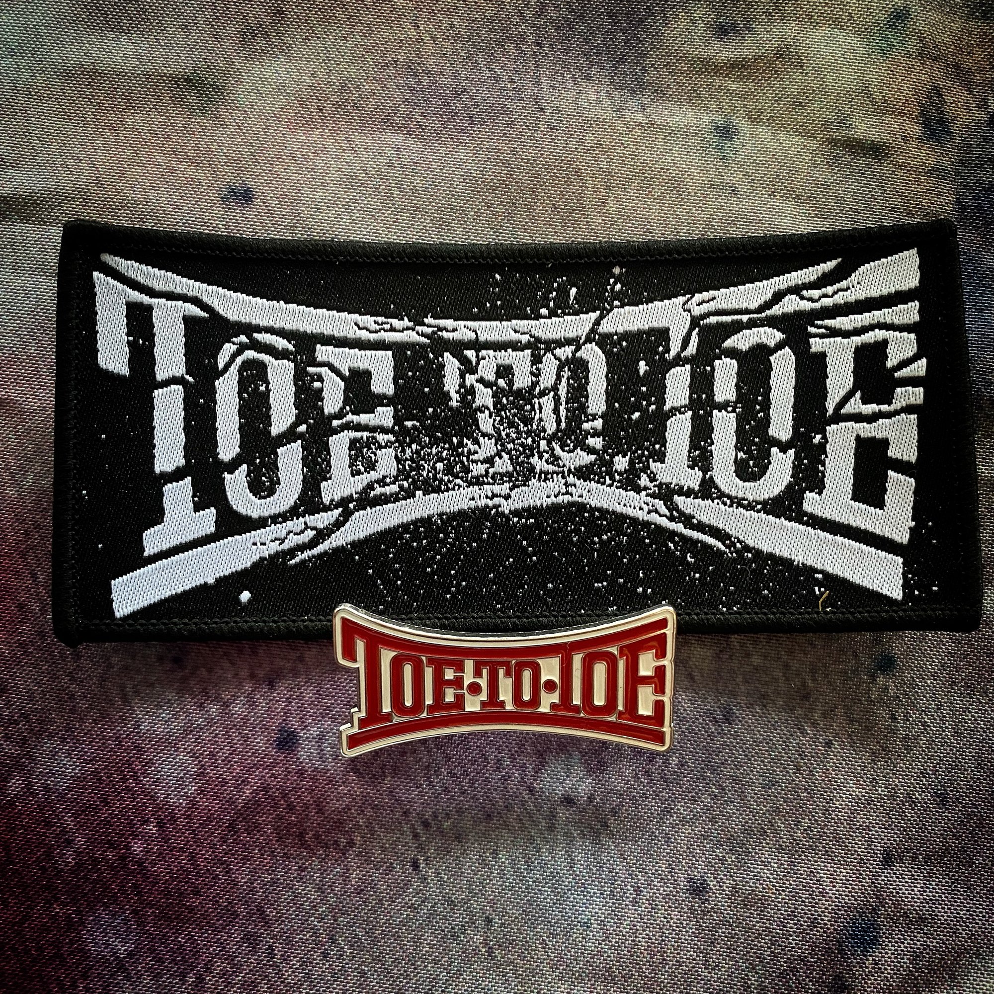 Official Toe to Toe "Logo" Patch + Pin Woven patch with black paper backing + double pinned metal pin.