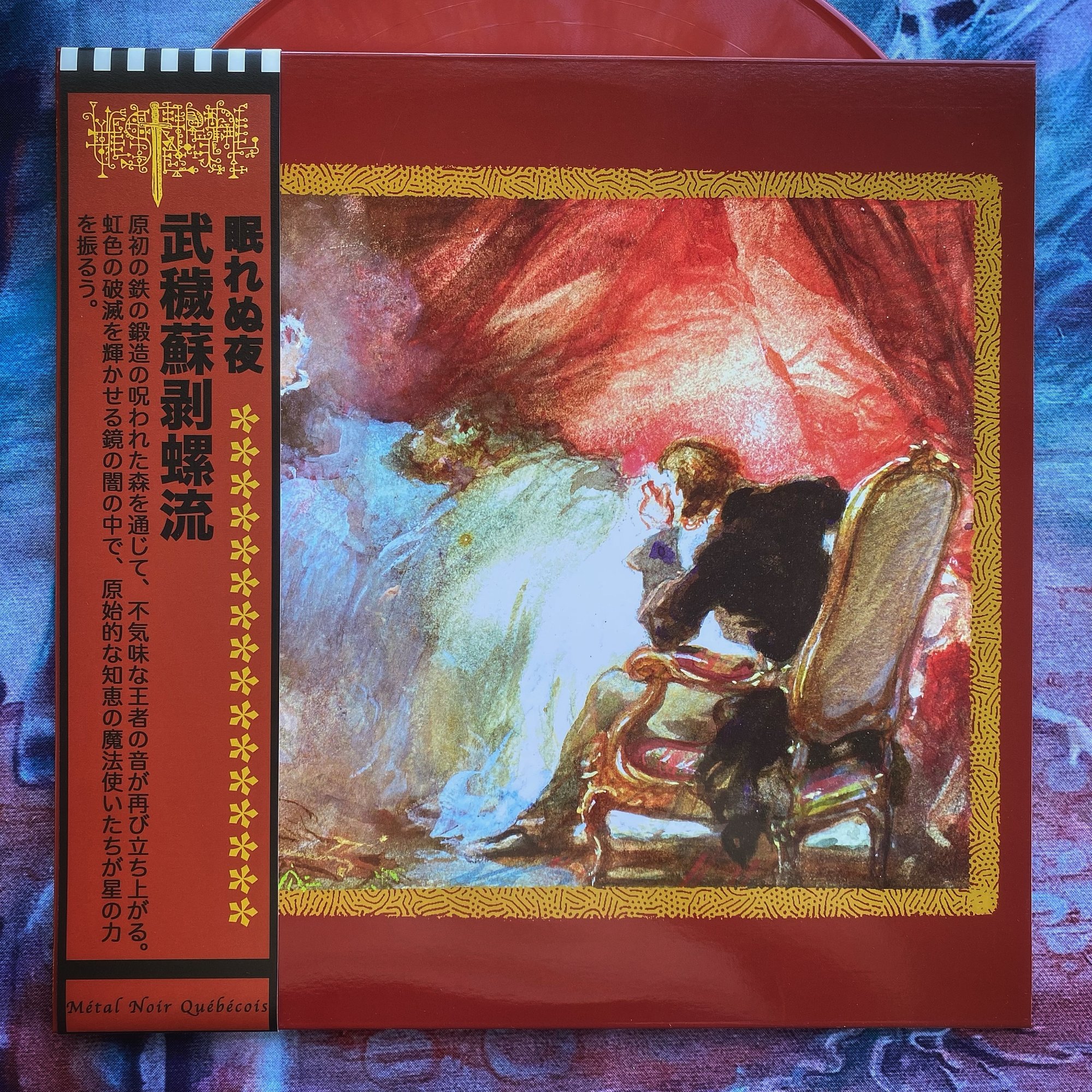 2nd press, available on Japanese style tip-on jacket with OBI, Orange vinyl. Nuits Blanches ("White Nights"), the debut full-length album by Montreal-based black metal band Vespéral, is a haunting exploration of loneliness, depression, and mental turmoil. Formed in 2022, the quartet—Sovannak (vocals and synths), Atrocité (guitars), Nakkabre (drums), and Cauchemar (bass)—delivers a raw yet melodic take on Québec’s distinctive black metal scene, infused with elements of punk and dungeon synth. Praised for its emotional intensity and atmospheric richness, Nuits Blanches evokes a bittersweet warmth, likened to a solitary night by a roaring fireplace. It stands as a compelling addition to Québec’s prolific black metal legacy, blending post-punk and gothic influences with a raw, despairing core.